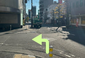 左手に見えるE-RA EASTⅡのビルまできたら左に曲がります
