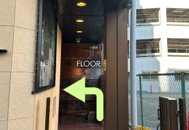 ビル1階の右側に見える「FLOOR」の中まで進みエレベーターで3階までお上がりください